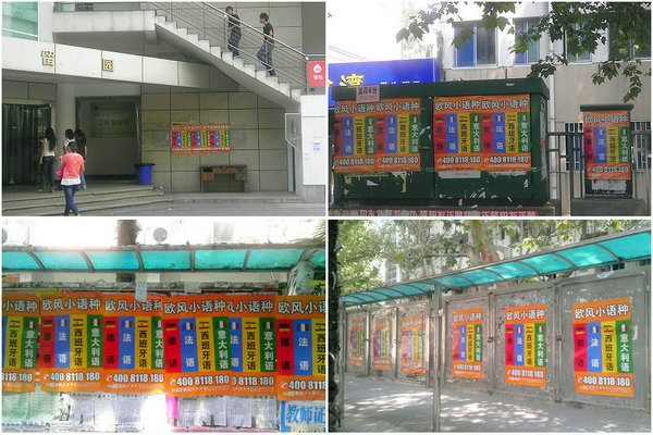 9月19日、20日兩天南京歐風(fēng)小語種在南理工人流量大的明苑美食廣場舉行。 無論是校內(nèi)的醒目海報還是我們發(fā)的宣傳單頁,南理工的同學(xué)都很認(rèn)真的仔細(xì)閱讀。 還有剛軍訓(xùn)完大一的孩子不辭疲憊來咨詢哦!掌聲鼓勵! 一起來看看現(xiàn)場情況吧~~ 校園內(nèi)醒目的海報宣傳
