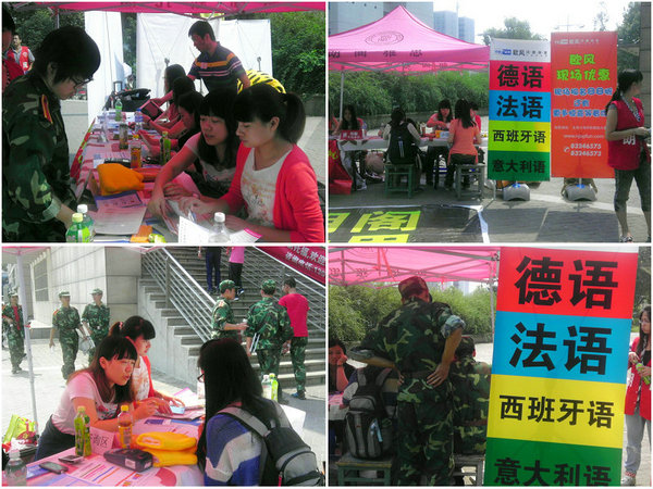 ![]() 現(xiàn)場氣氛火熱,不少同學(xué)咨詢小語種課程,理工大學(xué)子的學(xué)習(xí)熱情非常高哦!大一的新生也一掃軍訓(xùn)的疲憊,積極地咨詢歐風(fēng)課程。