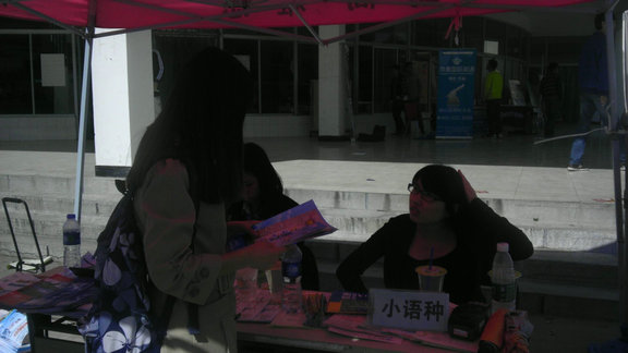 10.18日歐風小語種走進南大金陵學院,在第三食堂旁廣場舉辦了戶展活動。 請看歐風小編從現場發回的一線報道哦~ 現場醒目的海報宣傳: