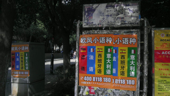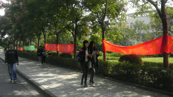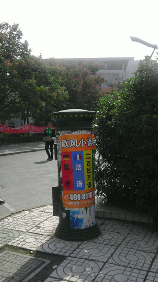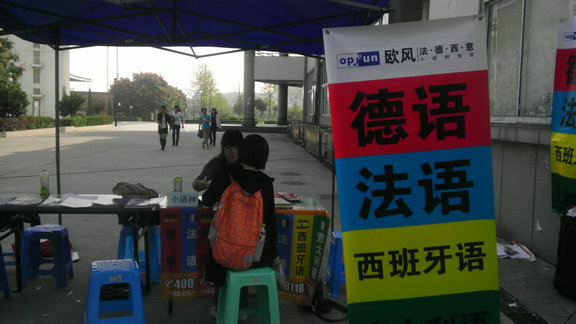 為回饋廣大南財學子對歐風小語種的關注和支持,10月18日歐風在南財仙林校區的中苑食堂舉行了為期一天的戶展活動。 看,校內醒目的海報宣傳: ![]() ![]() ![]() 現場同學發放單頁給同學們