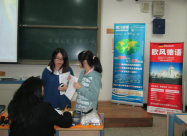 10月23日晚南京歐風小語種在南工大開展了德語講座,現場總共有83位同學跟著歐風專職教師王佳萍老師盡情領略德語學習及德國文化的魅力!現場報名還有88折優惠,記得隨時關注我們的高校活動預告!下次活動就可以搶占先機了哦! 一起來看看活動現場照片吧~ 教室旁邊的講座宣傳海報~主講美女王老師引得眾多同學矚目啊