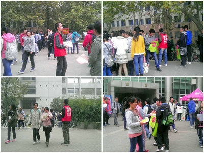 11.8日歐風小語種在南京理工大學人流量大的明苑美食廣場舉辦了一天的戶展活動。當天雖然天氣寒冷,但同學們咨詢的熱情絲毫不減!不少同學冒著細雨和寒風一早就過來咨詢!現場歐風小語種的專業課程顧問更是熱情接待,為每一位學生量身規劃定制課程。 【活動現場海報及發單宣傳】