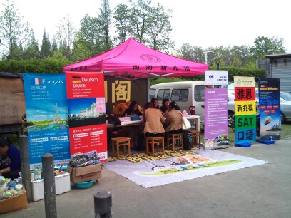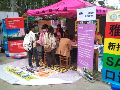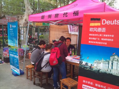 4.17,4.18,南京歐風(fēng)小語(yǔ)種與朗閣雅思走進(jìn)南京林業(yè)大學(xué),在美食街廣場(chǎng)為南林同學(xué)現(xiàn)場(chǎng)解答德語(yǔ)、法語(yǔ)、西班牙語(yǔ)、意大利語(yǔ)學(xué)習(xí)方面的困惑。