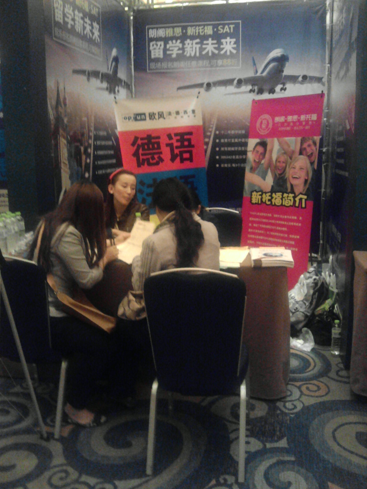 4.21日,萬達希爾頓酒店3樓。 歐風小語種與朗閣雅思參加報社的留學展活動,現場為大家解答德語、法語、西班牙語、意大利語的學習問題。很多家長過來咨詢留學與語言學習,為孩子將來出國做好鋪墊。 整個戶展給我的大感受是——可憐天下父母心。現場不是家長親自來的,就是家長帶著學生一起來的。每一位家長盡自己所能給學生提供好的。作為一家專業的小語種培訓機構,我們也提供給學生好的——的授課,精準的課程設置,周到的學員服務,有分量的承諾。 歐風小語種目前開設了針對到德國留學、法國留學、西班牙留學、意大利留學所需的語言培訓,歡迎大家了解。