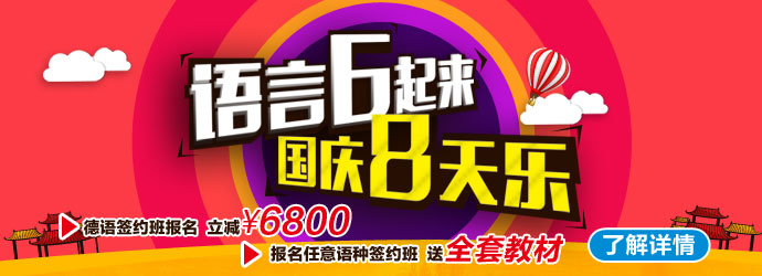 1. 語言6起來,國慶8天樂 【10.1-10.8國慶中秋假期活動】 a.德語簽約班報名立減6800元;(僅限德語18分班) b.報名任意語種班送全套教材; c.學費金額滿3萬元送大漁自助餐券2張,滿5萬元送赤坂亭自助餐券2張; d.報名歐風任意語種課程送68元打車費。 2.網絡可以使用:10月1日-10月30日,預約留下電話號碼及語種信息,即可領取1000元代金券(學費金額滿1萬元使用), 不與其他優惠同享受; 3.網絡咨詢,兩人或以上一起來報名可以享受9折優惠; 4.歐風微信/微博咨詢報名立減200元; 5老學員推薦朋友報名歐風任意課程,送兩張電影票,報名按積分兌換禮品; 6.校區轉介紹優惠:介紹朋友報名1萬以上送LAMY鋼筆一支;1萬以下送電影票/哈根達斯券/星巴克券任意兩張。(本項活動為長期活動) 詳情歡迎來電咨詢:025-83236520 (責任編輯:admin) |