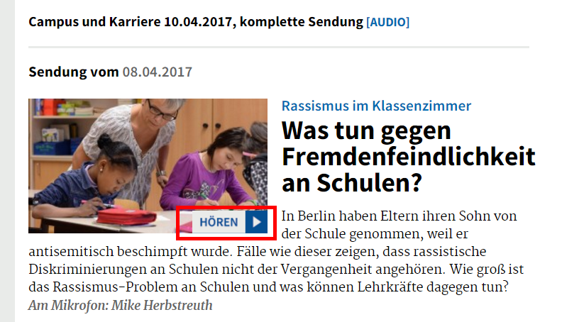 如圖,網站中可以聽的文章,一般都會帶有[Hören]的標志: