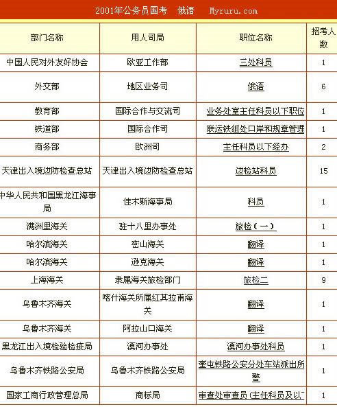 小語種招考的部門與職位年年大同小異,邊檢和海關是大頭,外交部老二,其余的諸如商務部、教育部、中聯、編譯局等等等等,都歸入小三,至于這些部委的職能,看看名字就能知大概