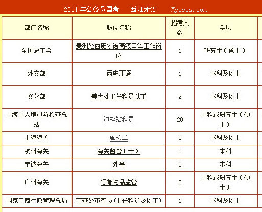 國考是多少人的夢想相信不用南京歐風小編我再過多介紹了。現在小語種也逐漸在國考中體現出分量,2013年國考公告第5個變化是招收7個非通用語職位的部門由過去的中聯部、外交部、教育部、商務部、文化部、對外友協、中國貿促會這7個部門增加為現在的12個,增加的5個部門為:科技部、國家旅游局、國家外國局、中央編譯局、外交學會。 1、招考的部門與職位